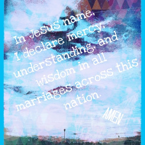 We pray for your presence Holy Spirit to rush over our marriage today with that mega love would resinate out of it, and be consumed with the kind of hope that does not let you down or disappoint you. Let love flush out the disappointments, the resentments, and all the bad moments. May every season be filled with the divine activity we all need so much in Marriage.
